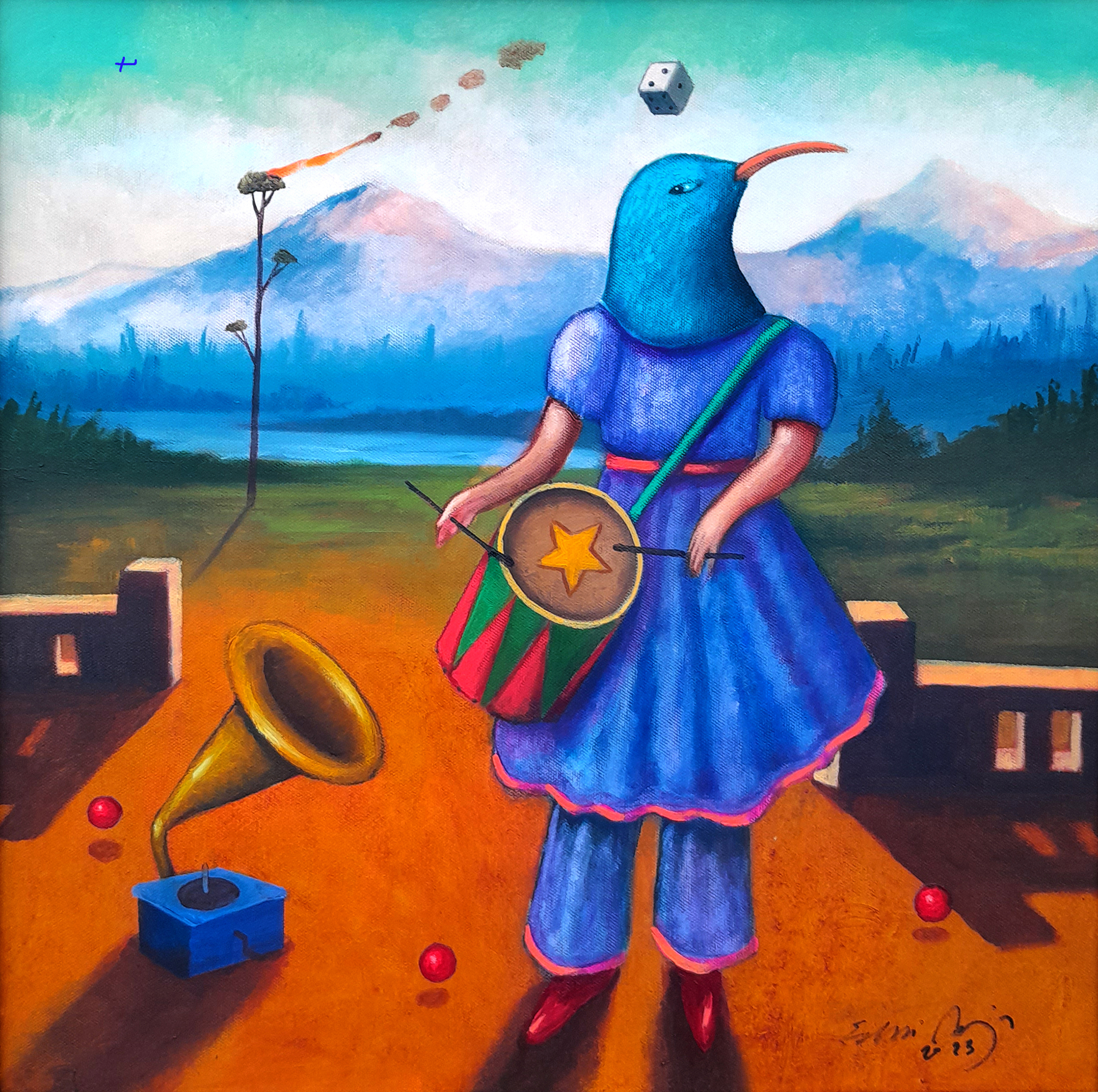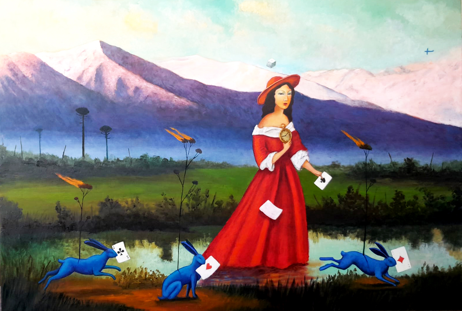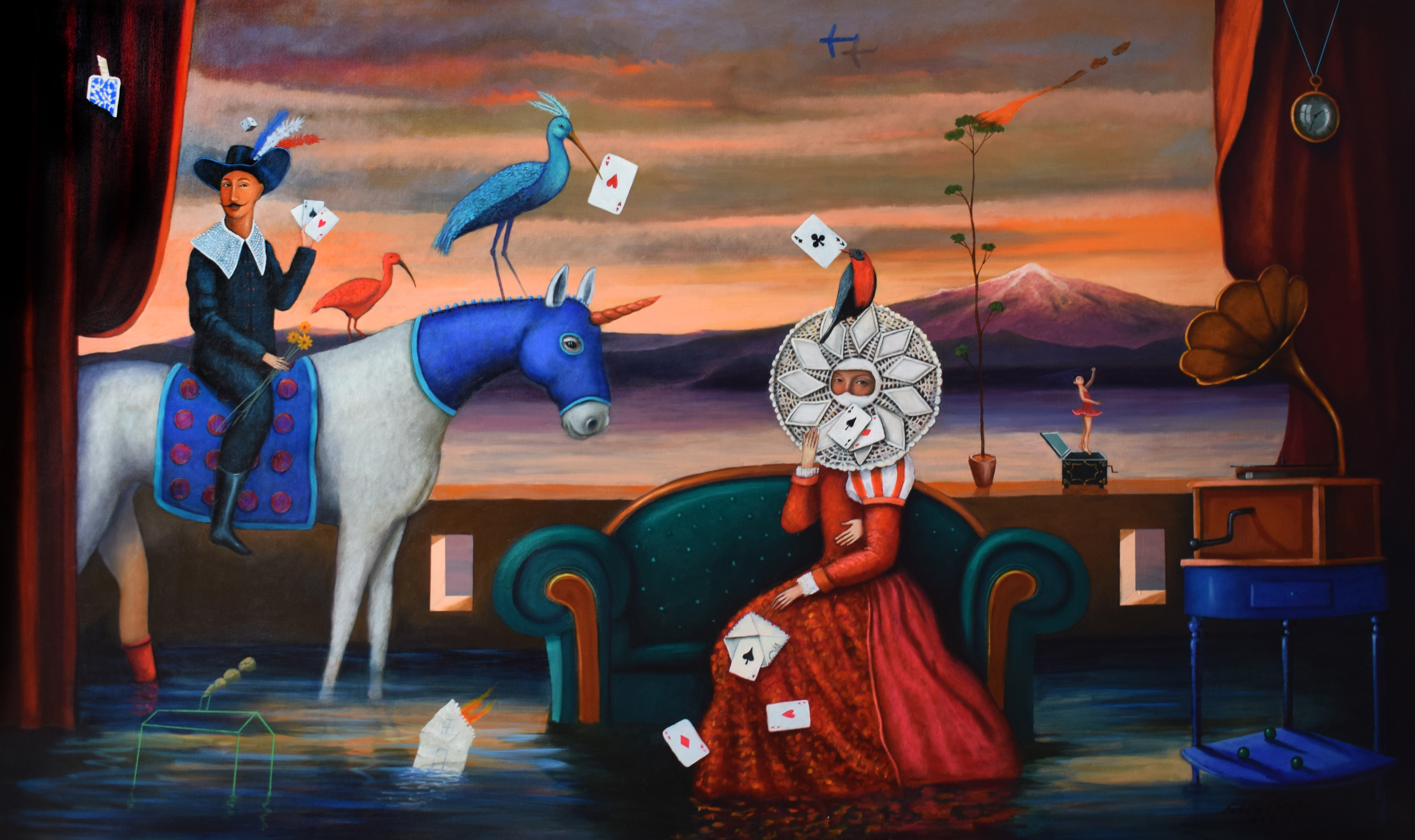 Las obras repletas de figuras, se materializan en un juego onírico en donde la fantasía juega el papel principal.